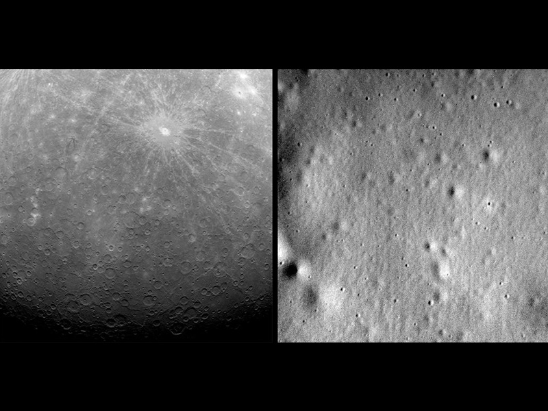 18 Mart 2011’de MESSENGER uzay sondası, Merkür’ün yörüngesindeki ilk uzay aracı olarak tarihe adını yazdı. On bir gün sonra uzay aracı, burada solda gösterilen Merkür yörüngesinden şimdiye kadar elde edilen ilk görüntüyü yakaladı. Başlangıçta bir yıllık yörünge görevi olarak planlanan MESSENGER uzay sondasının görevi Merkür’ün yörüngesinde dört yıldan fazla bir süre bilgi toplayarak devam ettirildi. Teknolojik ilklere imza atarak 30 Nisan 2015’te MESSENGER tekrar tarih yazdı ve gezegeni etkileyen ilk uzay aracı oldu. Toplamda MESSENGER Merkür hakkında yörüngeden 277.000′ den fazla görüntü elde ettikten sonra Dünyaya geri döndü. Bu görüntülerin sonuncusu ise sağdaki fotoğraftır.