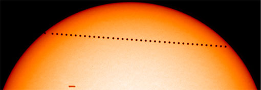 Time-lapse image of the 2003 Mercury transit as observed by NASA’s SOHO spacecraft.